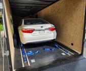 We use a 8.5x24 car hauler trailer with a 7.5ft interior height. The trailer is equipped with rubber diamond plate floor, full length E-track, a winch, and a large escape door with removable inner fender. This allows us to open the driver doors of vehicles and not climb out through car windows like some other transporters do.